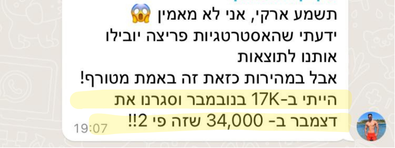 אתה מקבל ממני החזר כספי מלא. כי אני יודע שהתוכנית תכניס לך פי 100 יותר מההשקעה בה.